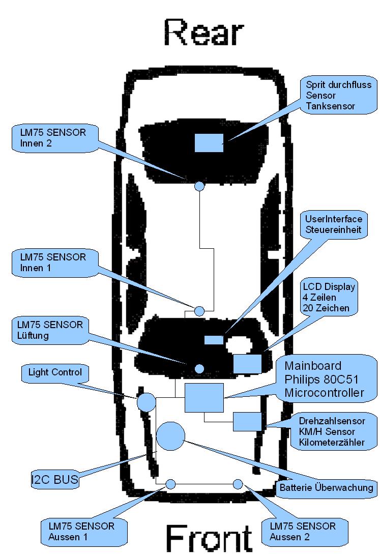 Es kommen mehrere MCU's zum einsatz. Die MCU's sind alle miteinander verbunden und können untereinander Kommunizire. Die Kommunikation zwischen den Microcontroller geschieht über CAN-Bus.